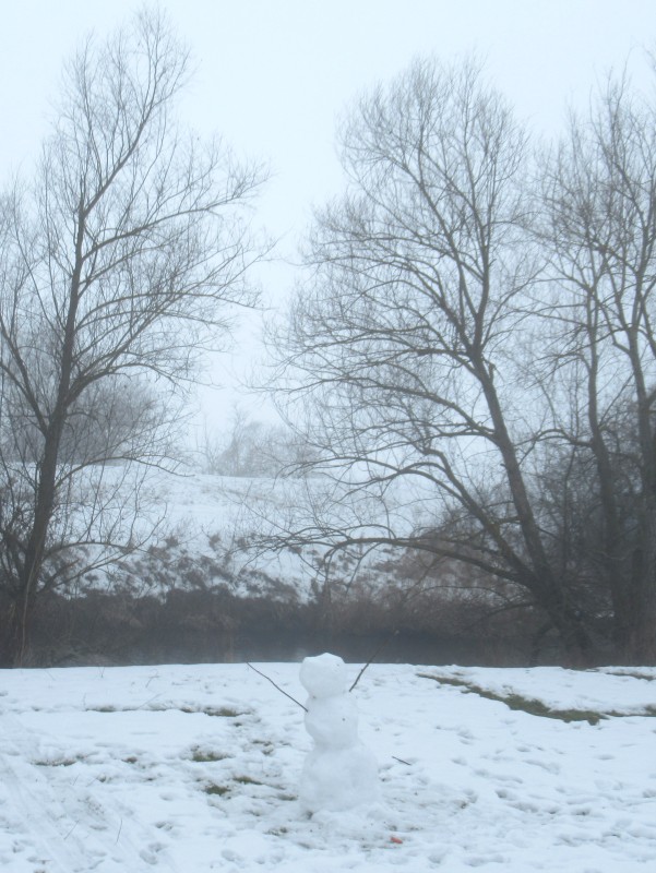 Habe ich im Januar eine Winterrunde mit herrlichstem Sonnenschein genießen können, so verschwindet Sömmerda heute im Nebel. Ich bin trotzdem draußen und bringe ein paar "graue" Bilder mit. Ein einsamer Schneemann trotzt dem Tauwetter.