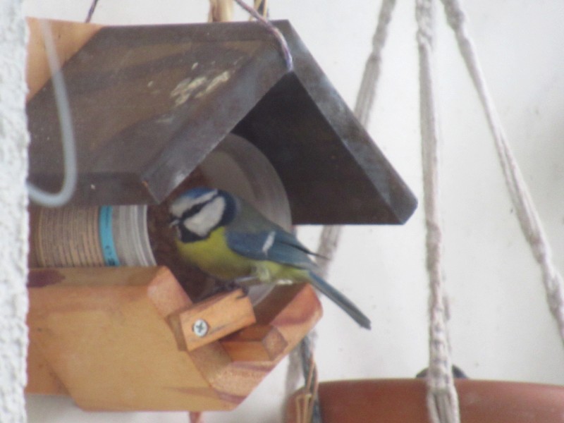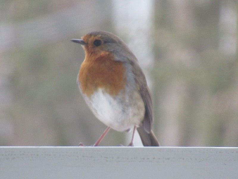 Neuerdings besucht mich, neben den Blau- und Kohlmeisen, regelmäßig ein zaghaftes Rotkehlchen an meiner Balkonfütterung.