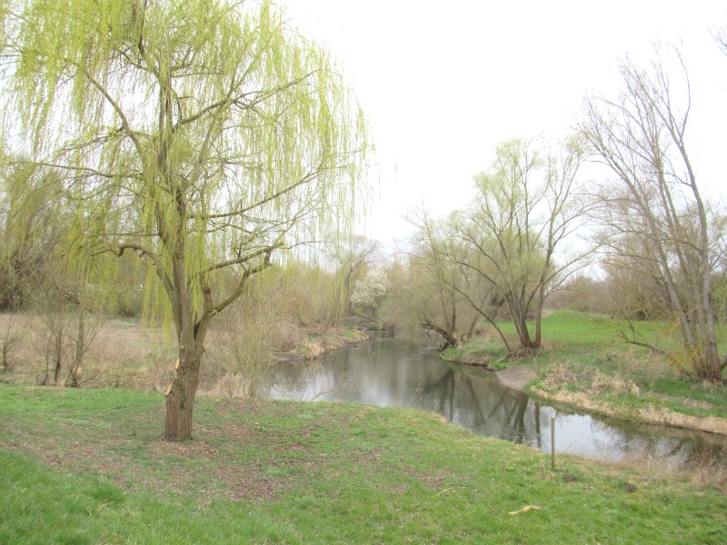 An der Unstrut sind die Zweige der Weide hoch oben gekappt - da komme ich nicht mehr ran. Zum Glück steht eine Weide dicht am Ufer; die haben die Stadtgärtner wohl vergessen :-) Na, da kann ich für die Zwerge doch noch ein paar Zweige mitbringen.